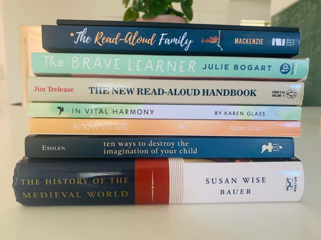 While I read less during the school year due to busyness with my children and the fact that we read aloud a lot as a family and let’s face it, I get tired; I find that during breaks and in the summer, I do a lot of reading for myself. I keep a notebook with space for notes for each book that I am reading. I underline and highlight my books as well. My kids know that I am building myself up as their teacher when I am reading books about homeschooling.